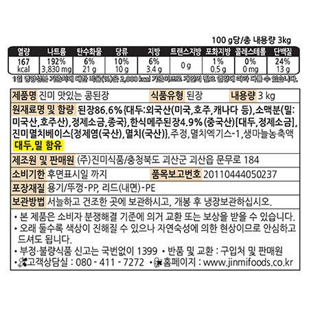 진미식품 맛있는콩된장(3Kg/EA)
