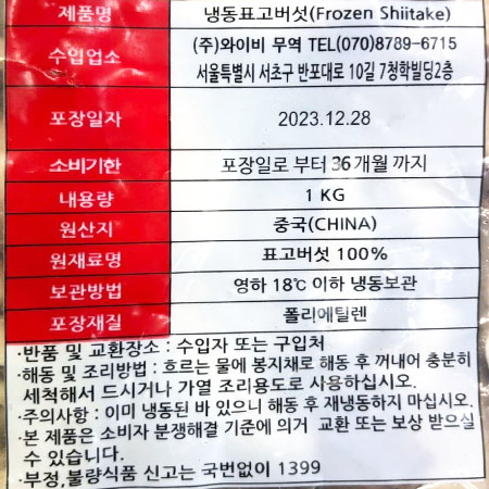 냉동표고버섯(5mm슬라이스 1Kg/EA)
