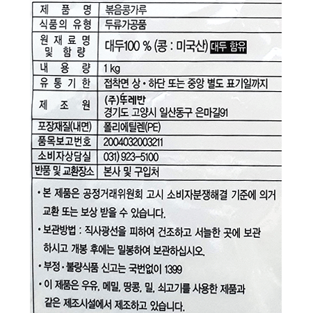 뚜레반 볶음콩가루(New 1Kg/EA) 이미지