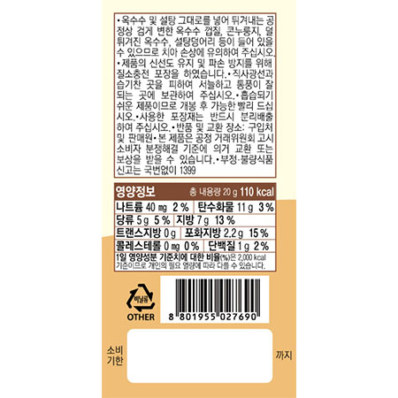 이츠웰 포켓팝콘_인절미뻥(20g*30입 20g/EA)
