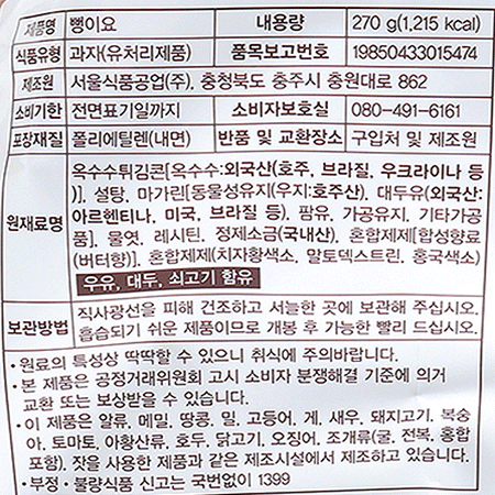 본 제품은 제품입고일별 소비기한 또는 품질유지기한이 상이하므로, 필요시 고객센터로 문의하여 주십시오. 제조일로부터 240일 까지