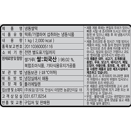본 제품은 제품입고일별 소비기한 또는 품질유지기한이 상이하므로, 필요시 고객센터로 문의하여 주십시오. 제조일로부터 365일 까지