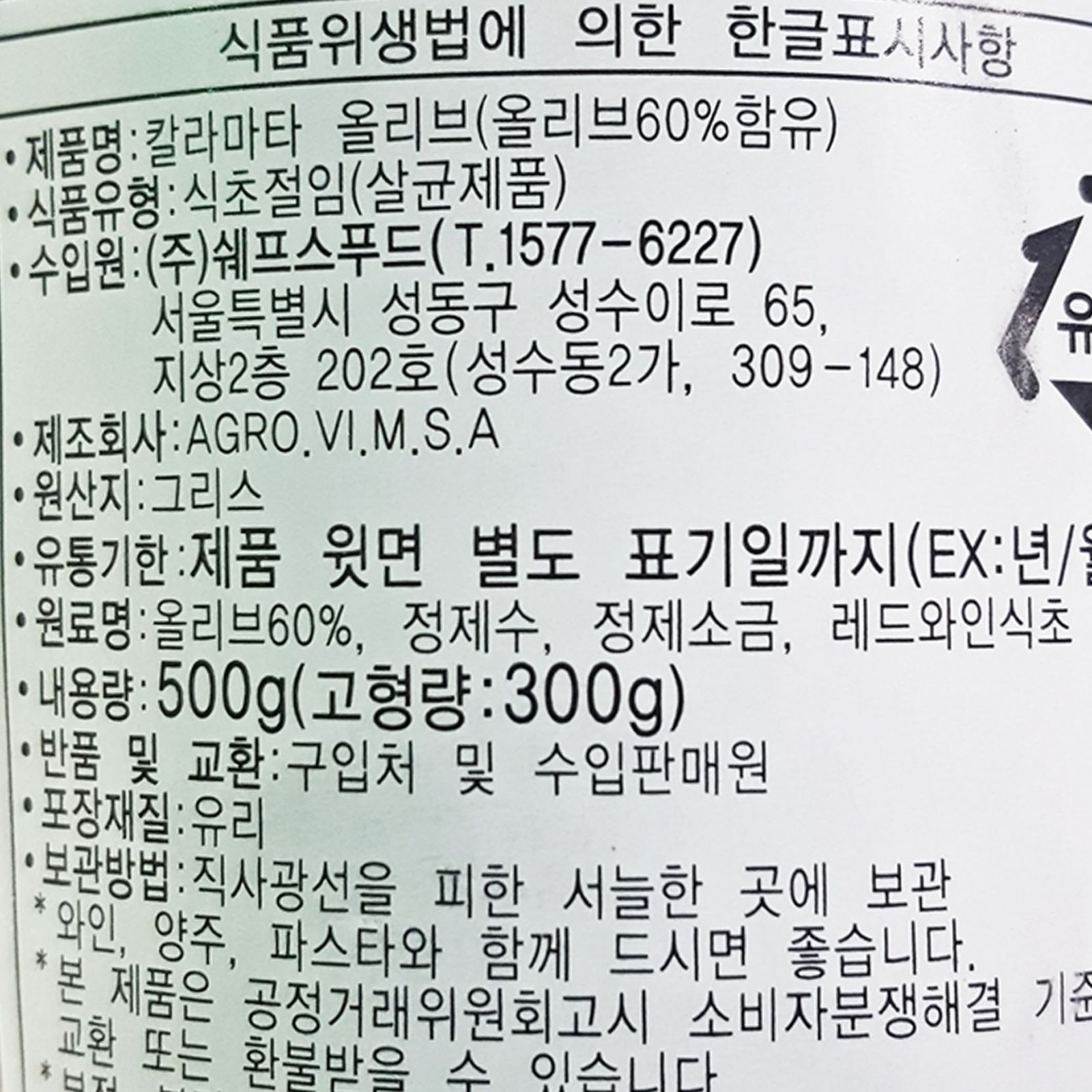 이리아다 올리브(칼라마타 500g/EA)