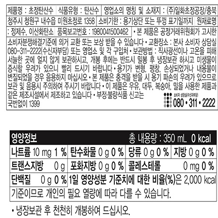 일화 초정탄산수(캔_350ml 350g/EA) 이미지