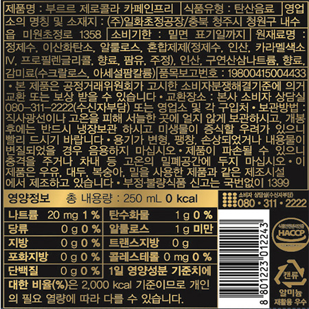 부르르 제로콜라(카페인프리_캔_250ml 250g/EA)