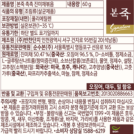 본죽 촉촉진미채볶음(60g/EA)