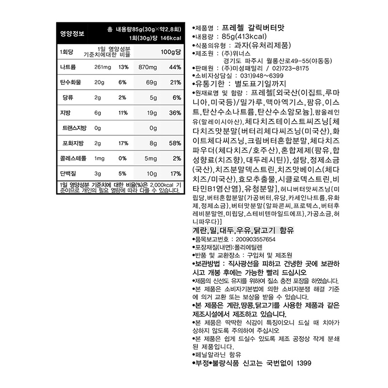 위너스 프레첼(치즈맛 85g/EA)