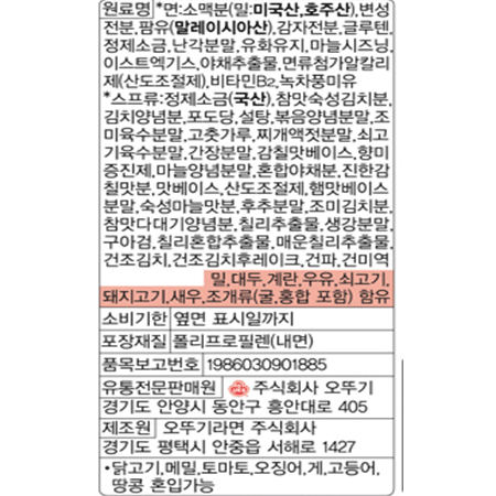 오뚜기 김치라면(봉지_멀티팩_120g*5입 600g/EA)