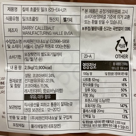칼리바우트 밀크초콜릿(버튼 2.5Kg/EA)
