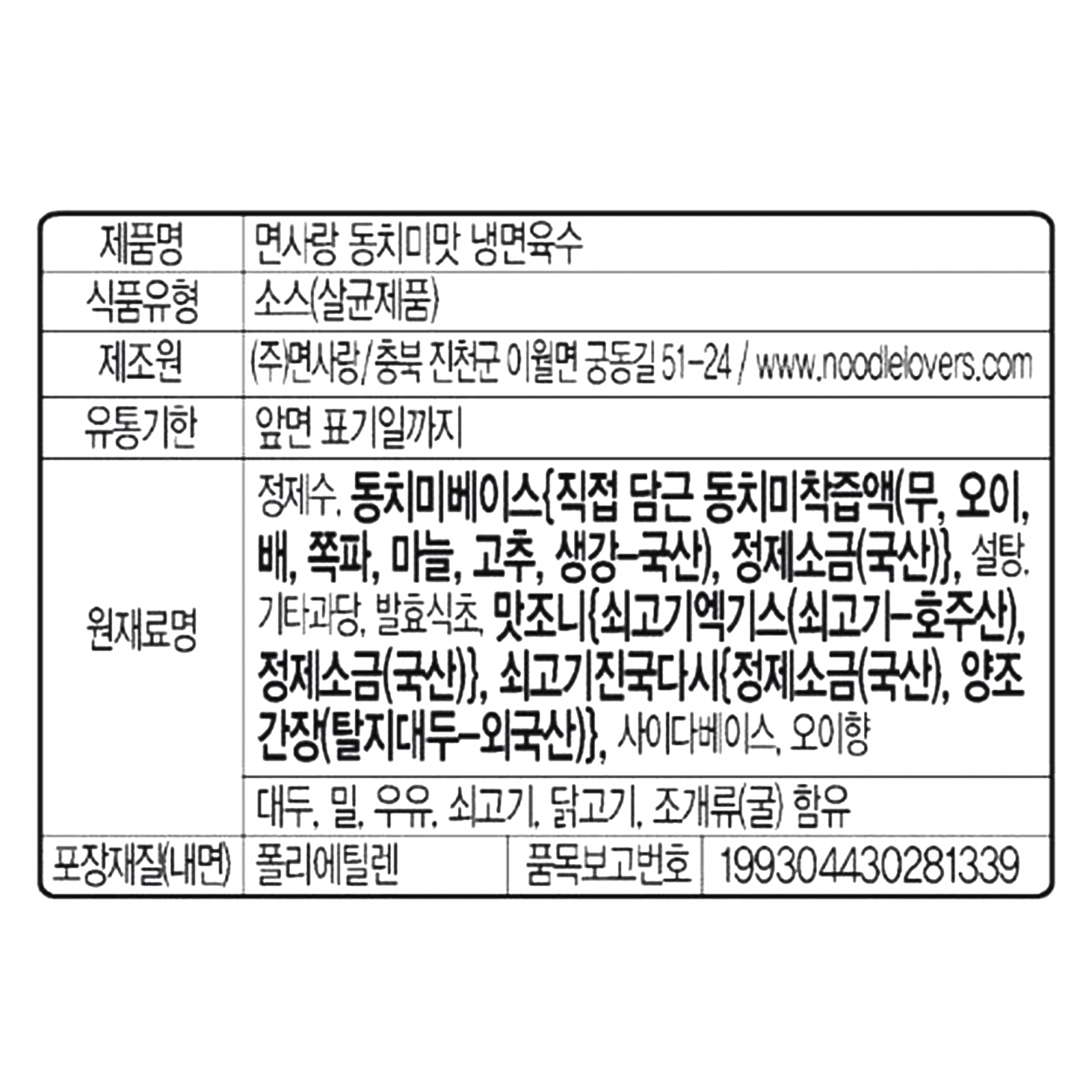 면사랑 냉면육수(동치미맛 5Kg/EA) 이미지