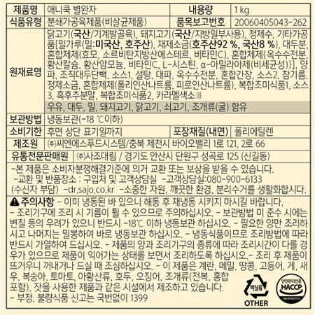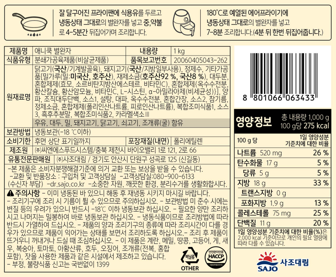 애니쿡 별완자(14.3g*70입 1Kg/EA)