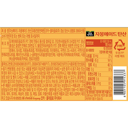 미닛메이드 자몽에이드(350ml_PET 350g/EA)