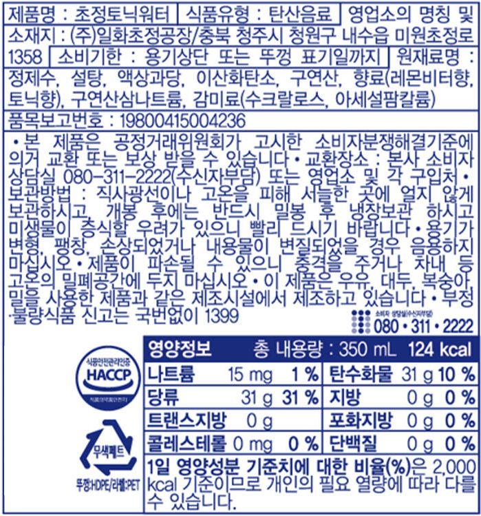 초정 토닉워터(350ml 350g/EA) 이미지