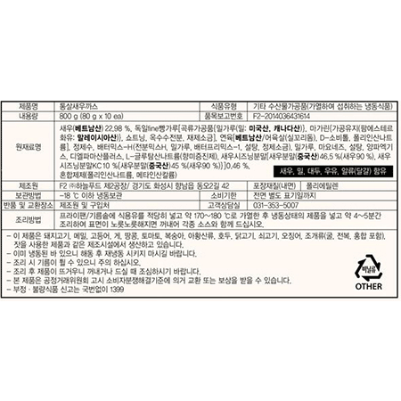 하늘푸드 통살새우까스(78~83g*10입 800g/EA)