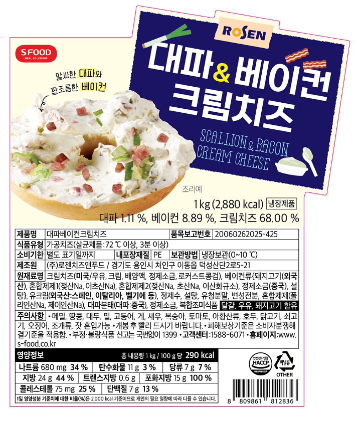 로젠치즈앤푸드 크림치즈(대파&베이컨 1Kg/EA)