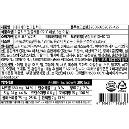 로젠치즈앤푸드 크림치즈(대파&베이컨 1Kg/EA) 이미지