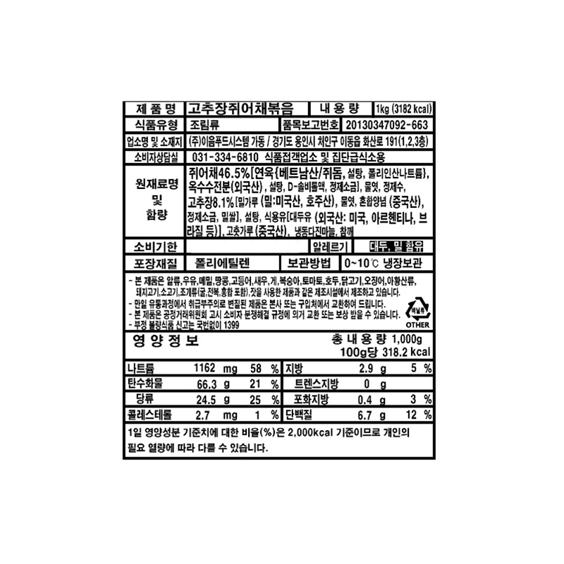 이음푸드 고추장쥐어채볶음(46.5% 1Kg/EA)