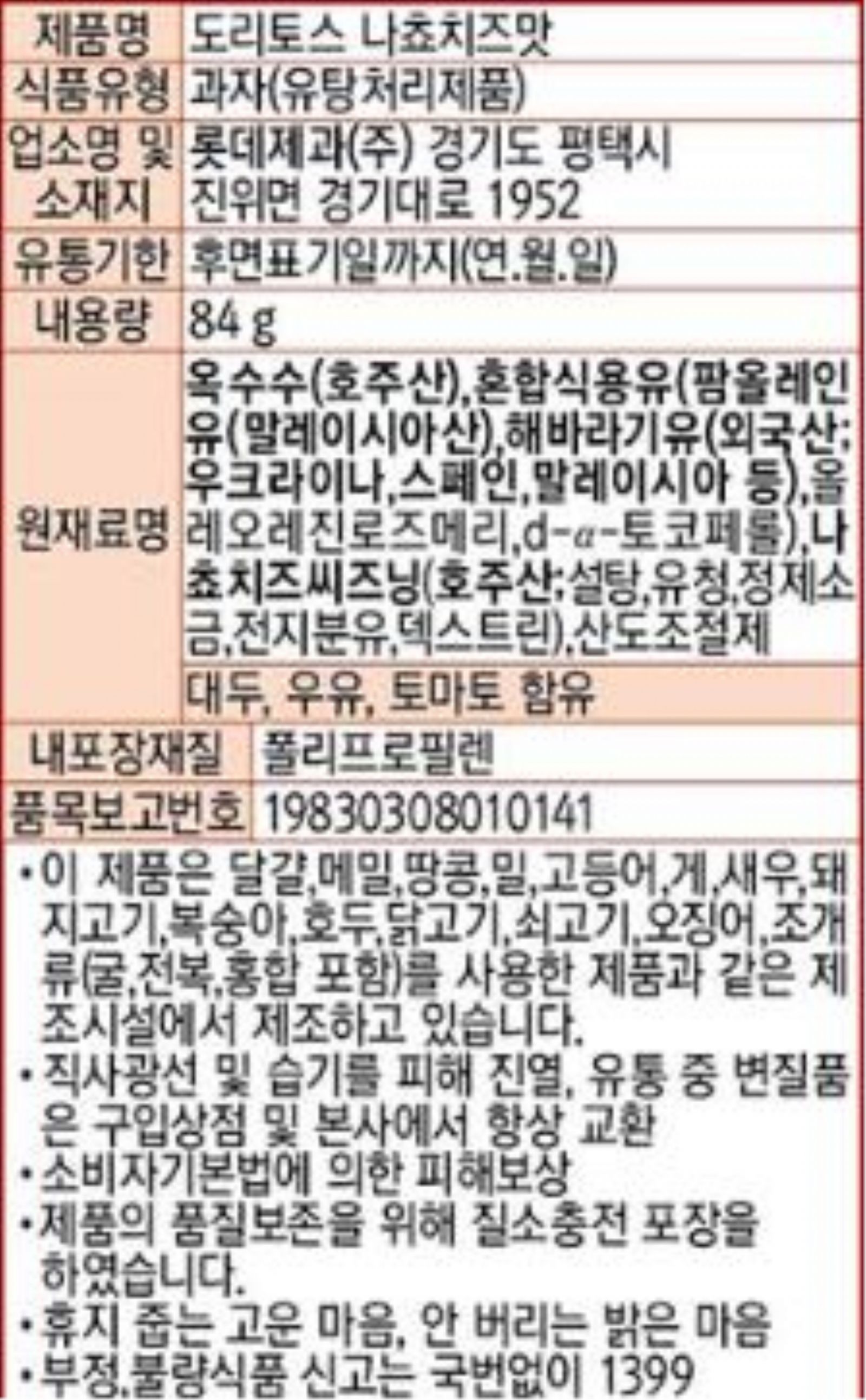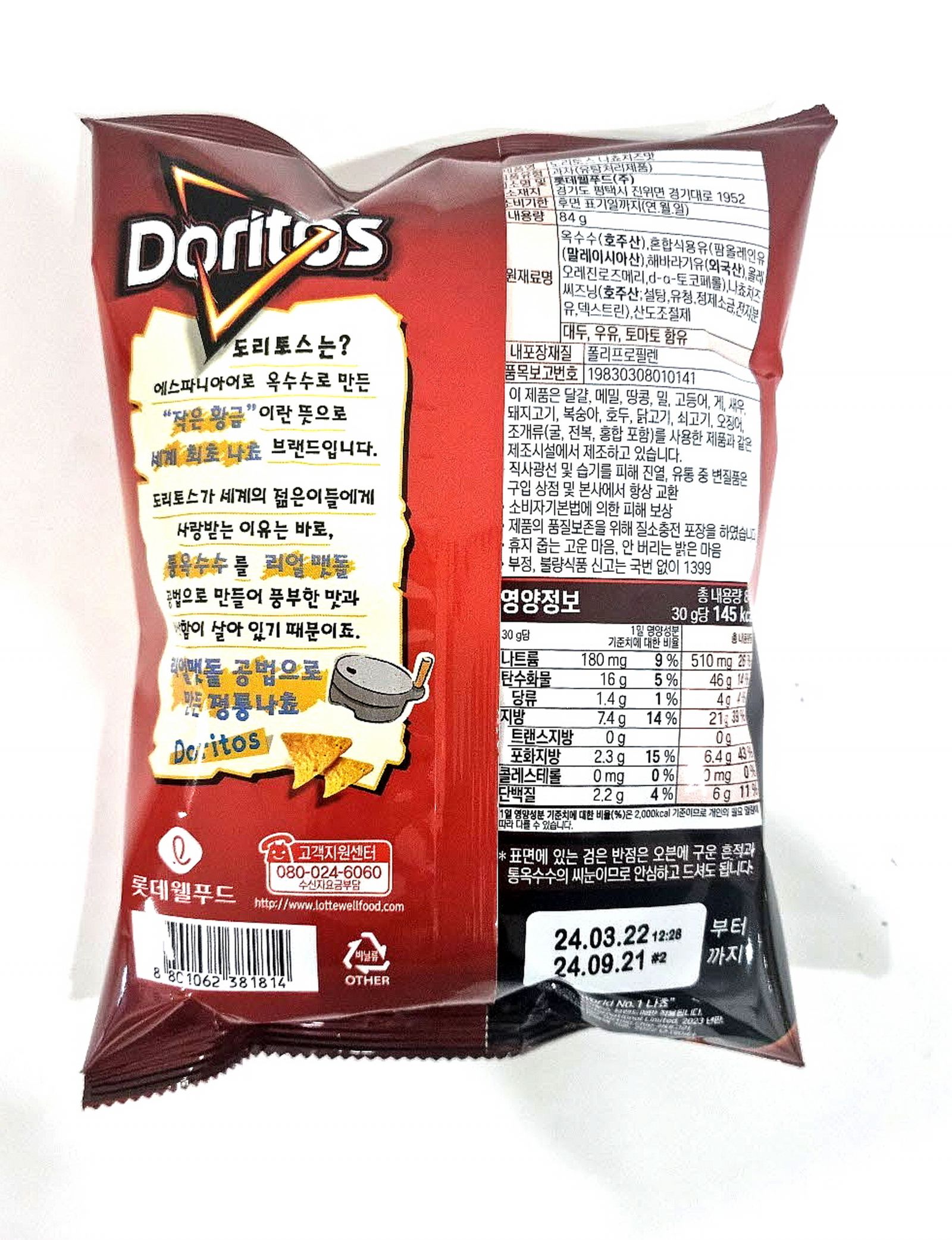 롯데제과 도리토스(나쵸치즈 84g/EA)