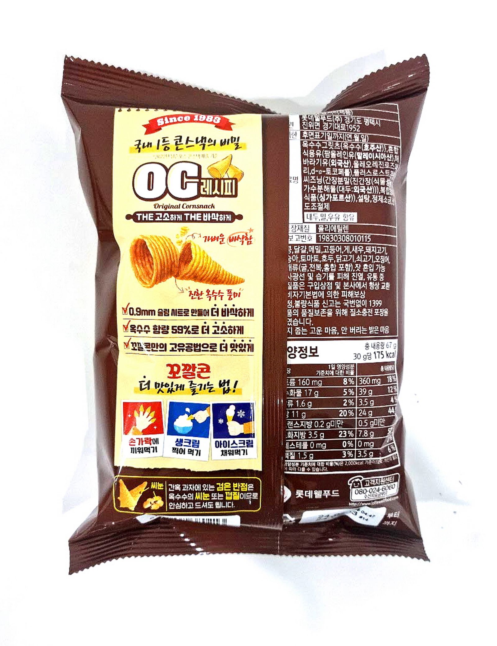 롯데제과 꼬깔콘(군옥수수맛 67g/EA)