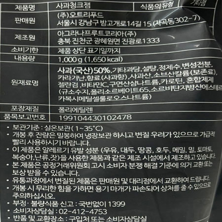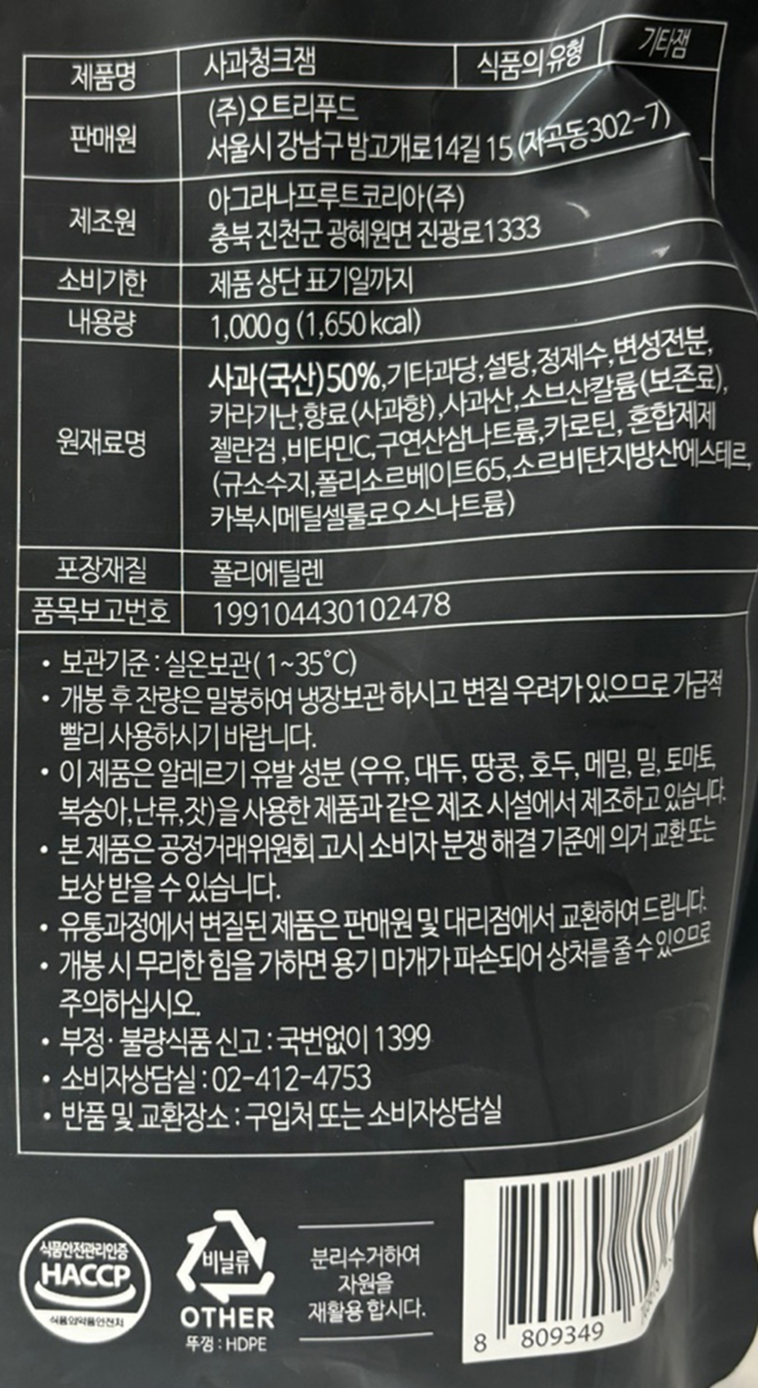 오트리푸드 사과청크잼(1Kg/EA) 이미지