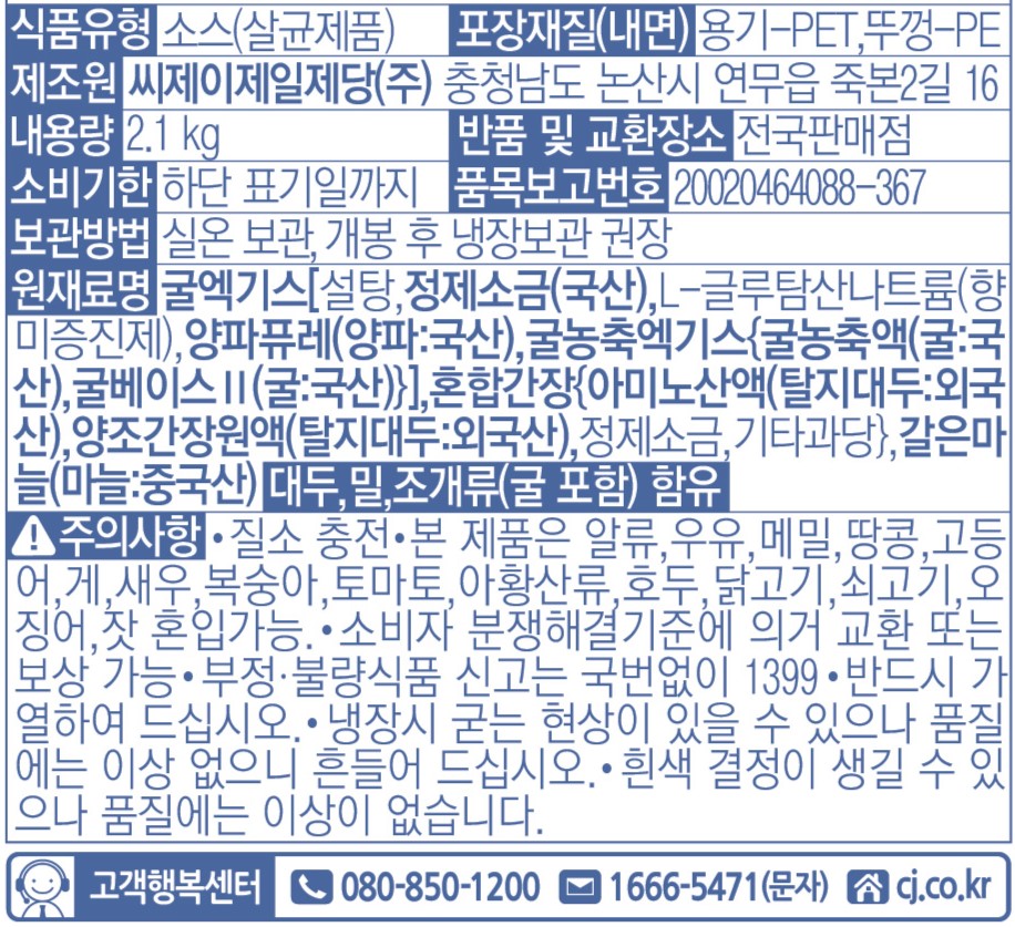 백설 굴소스(2.1Kg/EA)