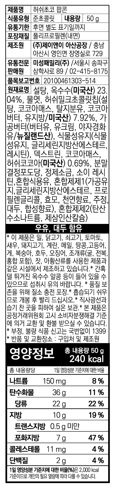 허쉬 초코팝콘(50g*14ea 700g/BOX)