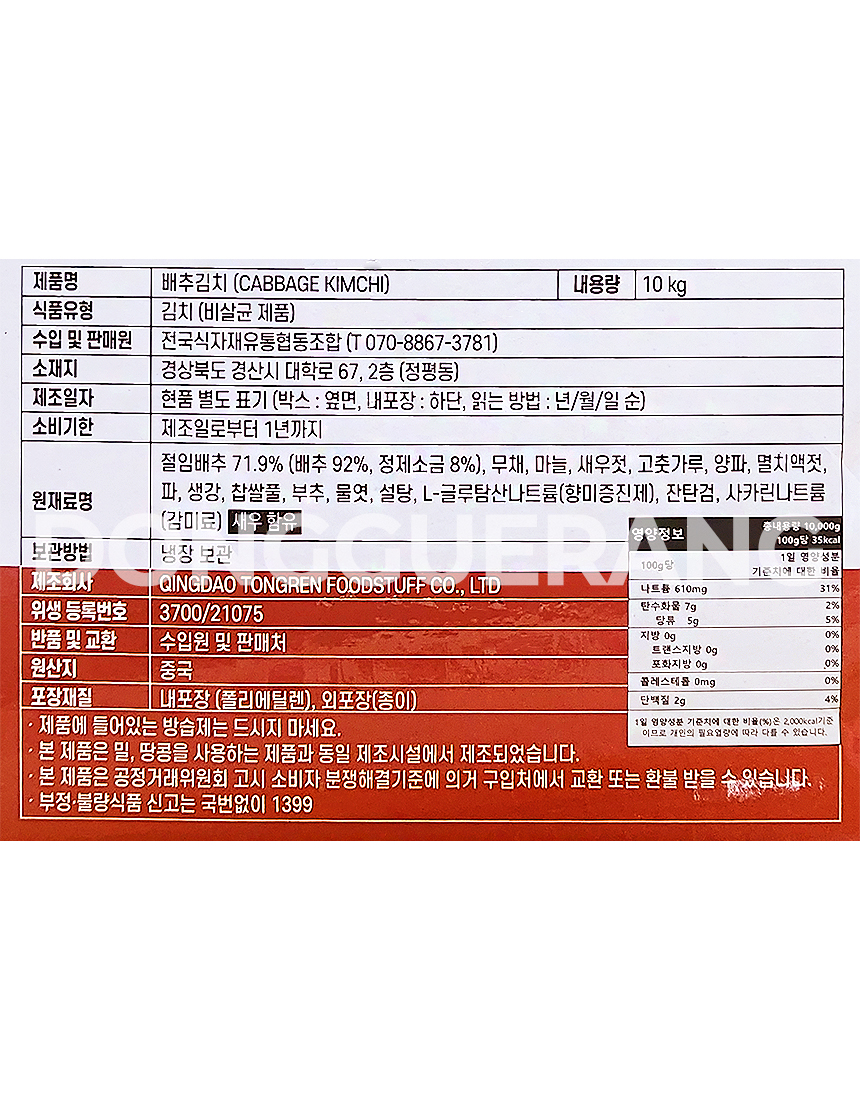디딤돌 맛김치(중국산/노랑테이프) 10kg [반찬용/먹기좋게 썰은용도]
