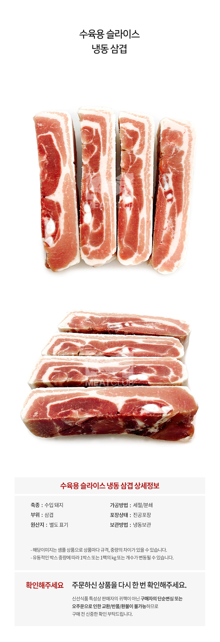 [냉동] 돼지삼겹살_칠레_가공_5~7cm 수육용_1kg_아그로수퍼 이미지