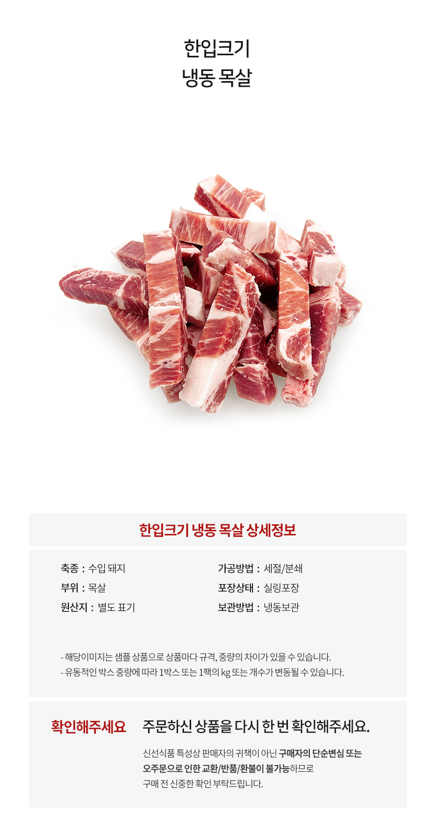 [냉동] 돼지목살_스페인_가공_1.5cm 한입크기_1kg