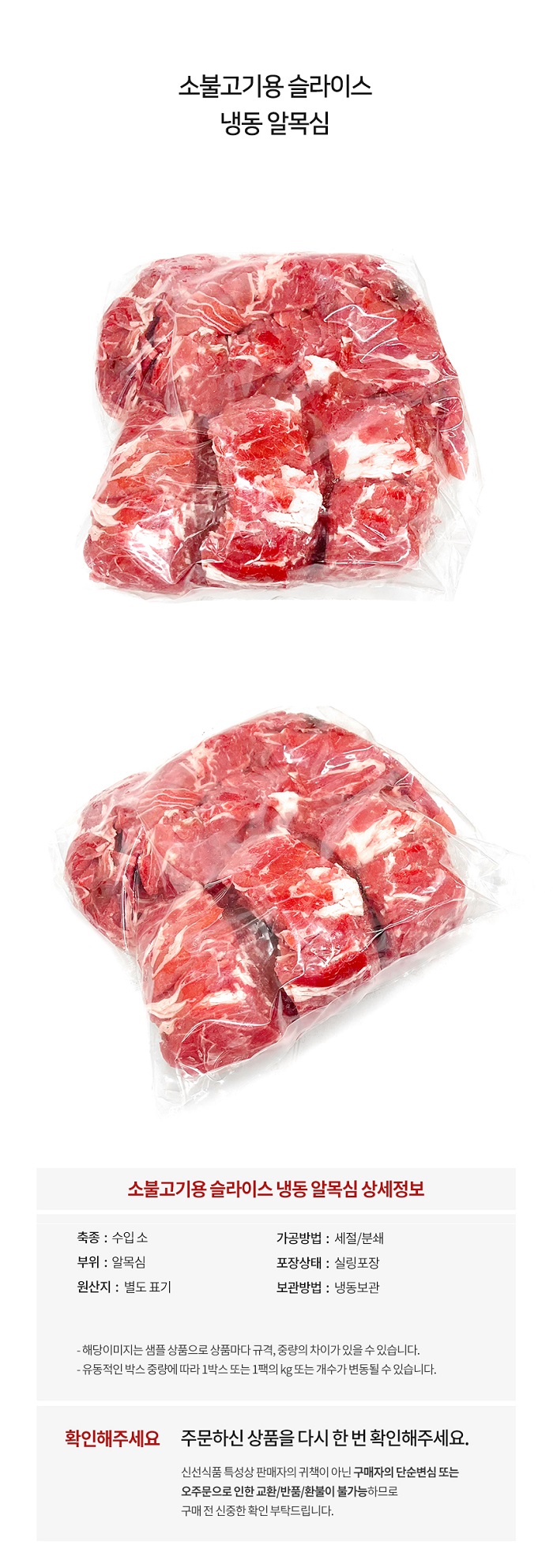 [냉동] 소알목심_미국_가공_2mm 소불고기용_1kg