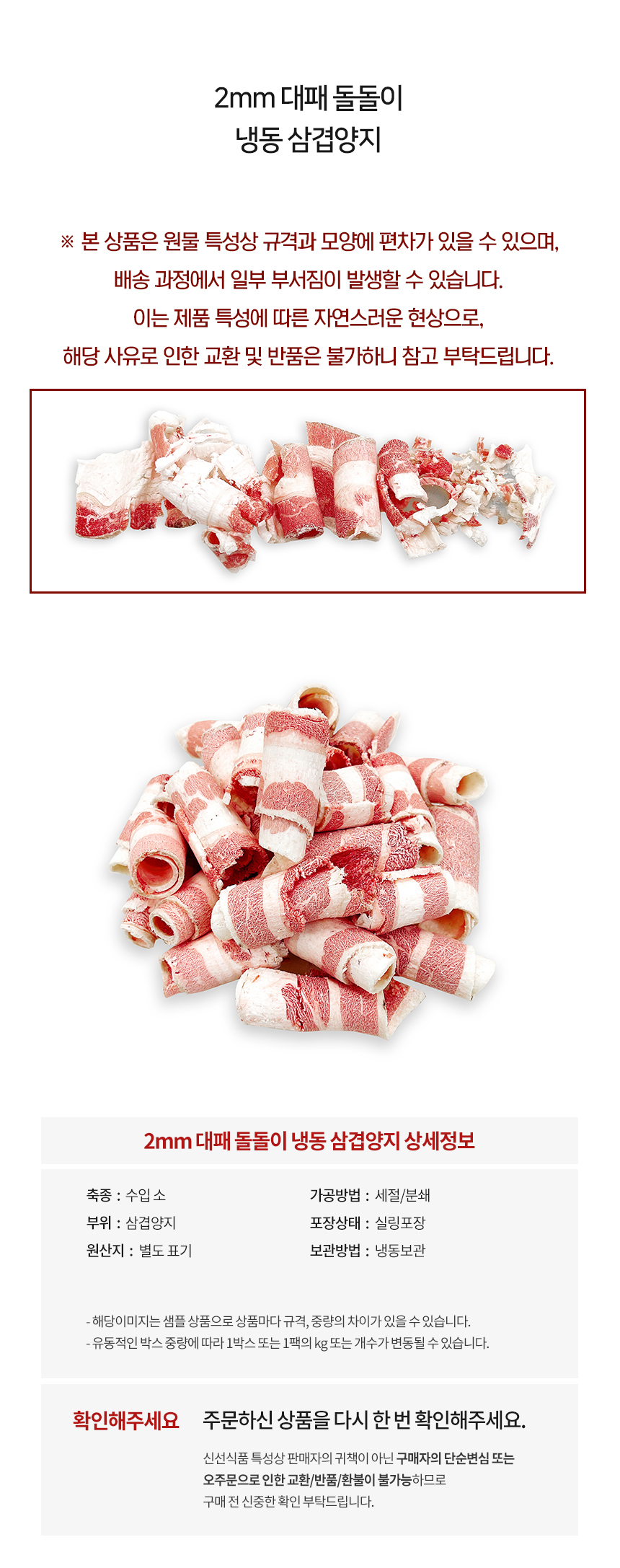 [냉동] 소우삼겹 삼겹양지_미국_가공_2mm 대패 돌돌이_1kg