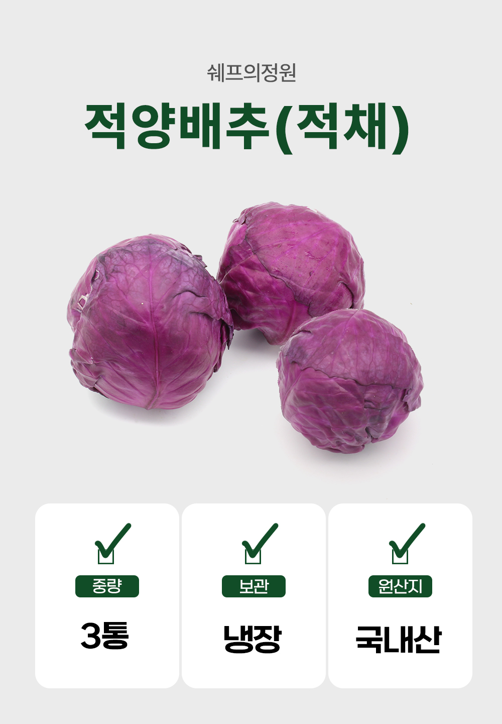 ⭐️적채 국산 적양배추 3통 (정품 크기)⭐️