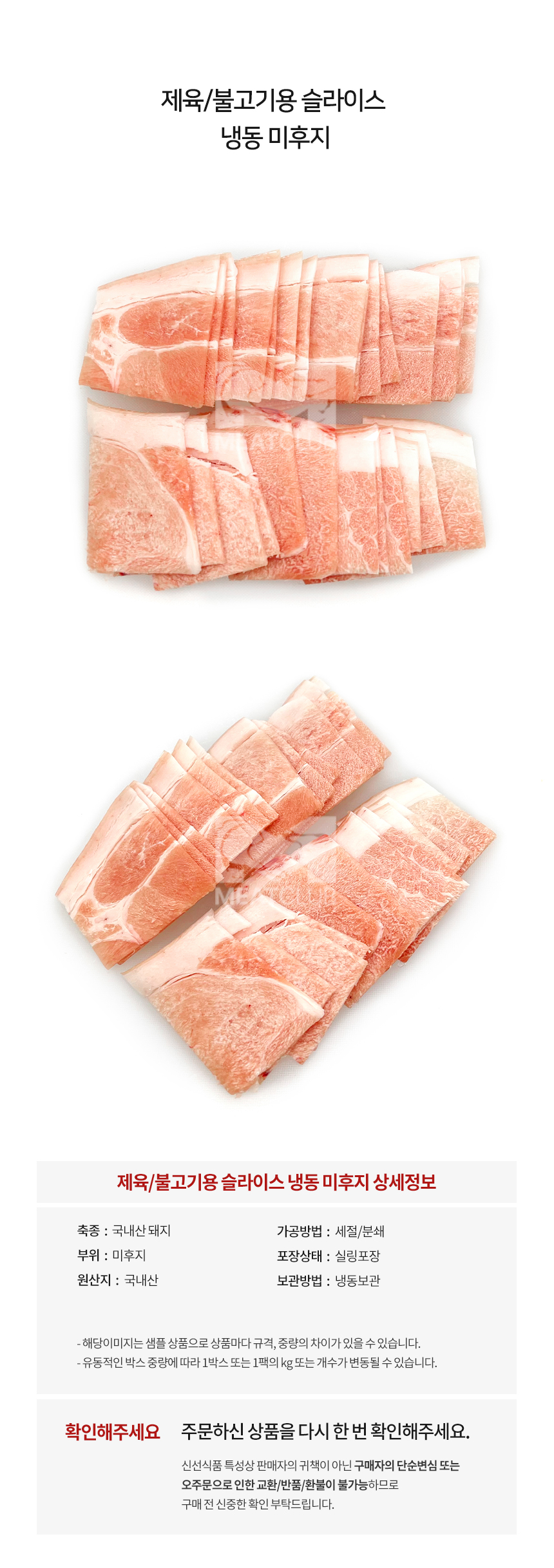 [냉동] 돼지미후지 미박뒷다리살_국내산_가공_2~3mm 제육용_1kg