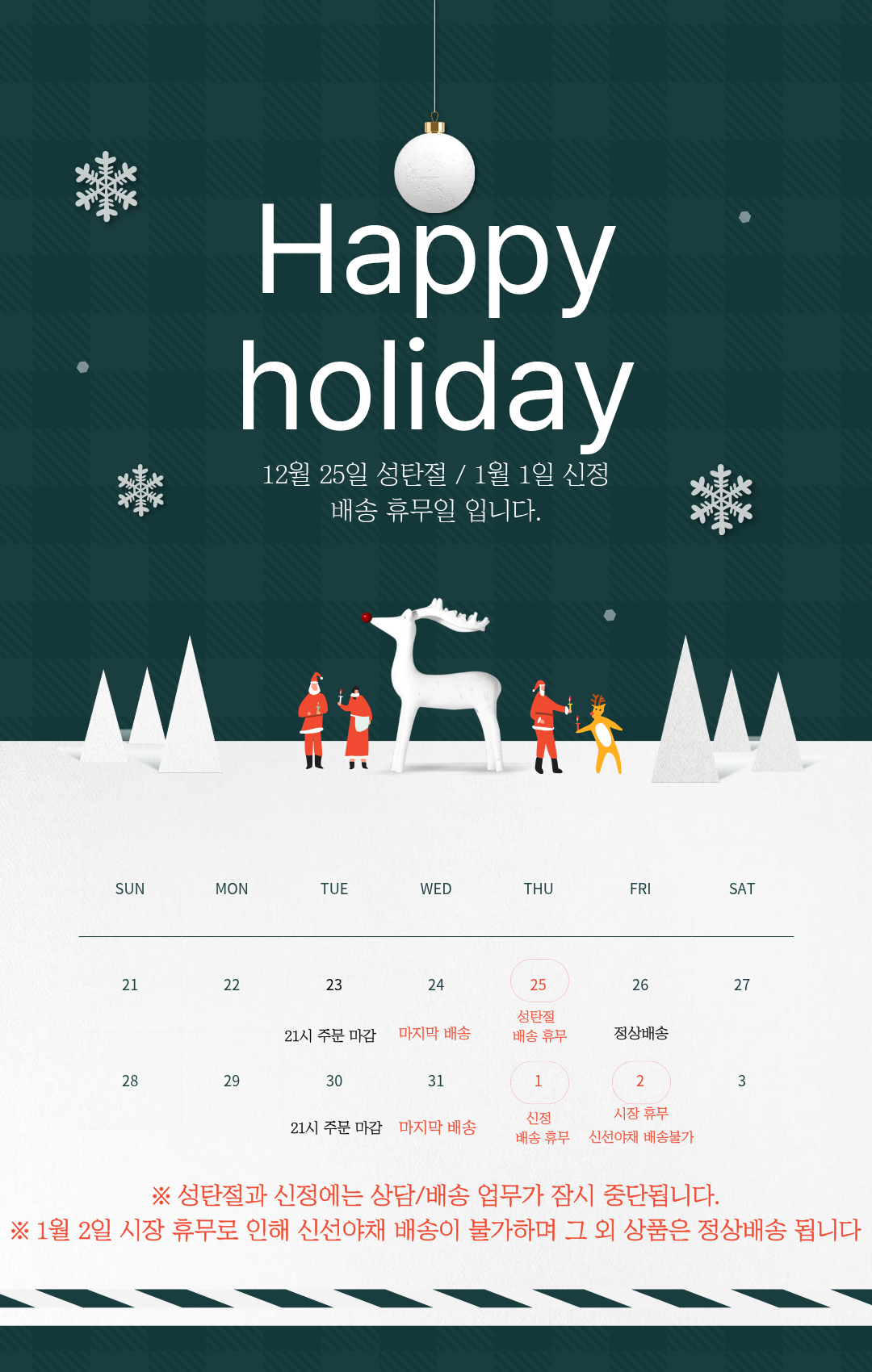 • 택배배송의 경우, 주말 및 공휴일 전일 및 당일에는 상품 발송이 어려울 수 있습니다.