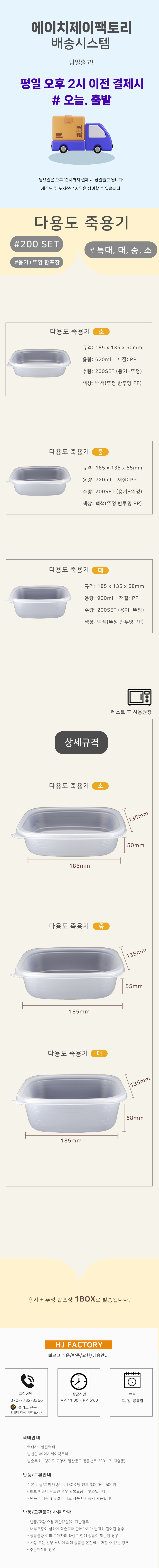 다용도 사각 죽용기 대(반투명) 용기+뚜껑 200세트