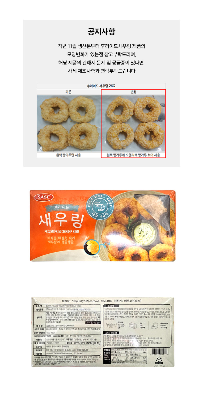 ![[무료배송] 사세 후라이드 새우링 736g(23g*32ea) 냉동 새우튀김 이미지](https://content.foodspring.co.kr/vendor/1564/images/37_6480731533_r.jpg?f=webp&s=876x876&t=inside)