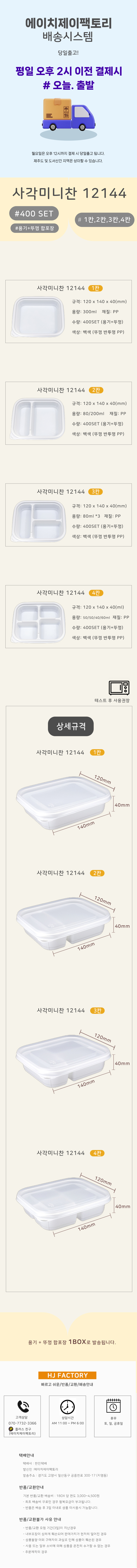사각미니찬용기 TY-12144 4칸 용기+뚜껑 200세트