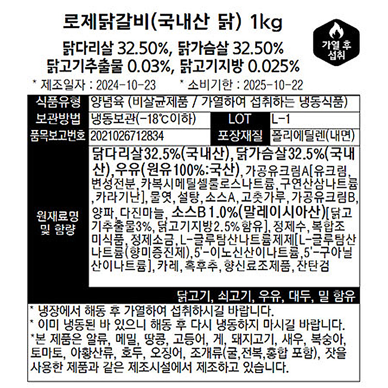 이츠웰레딧 로제닭갈비(국내산 1Kg/EA)