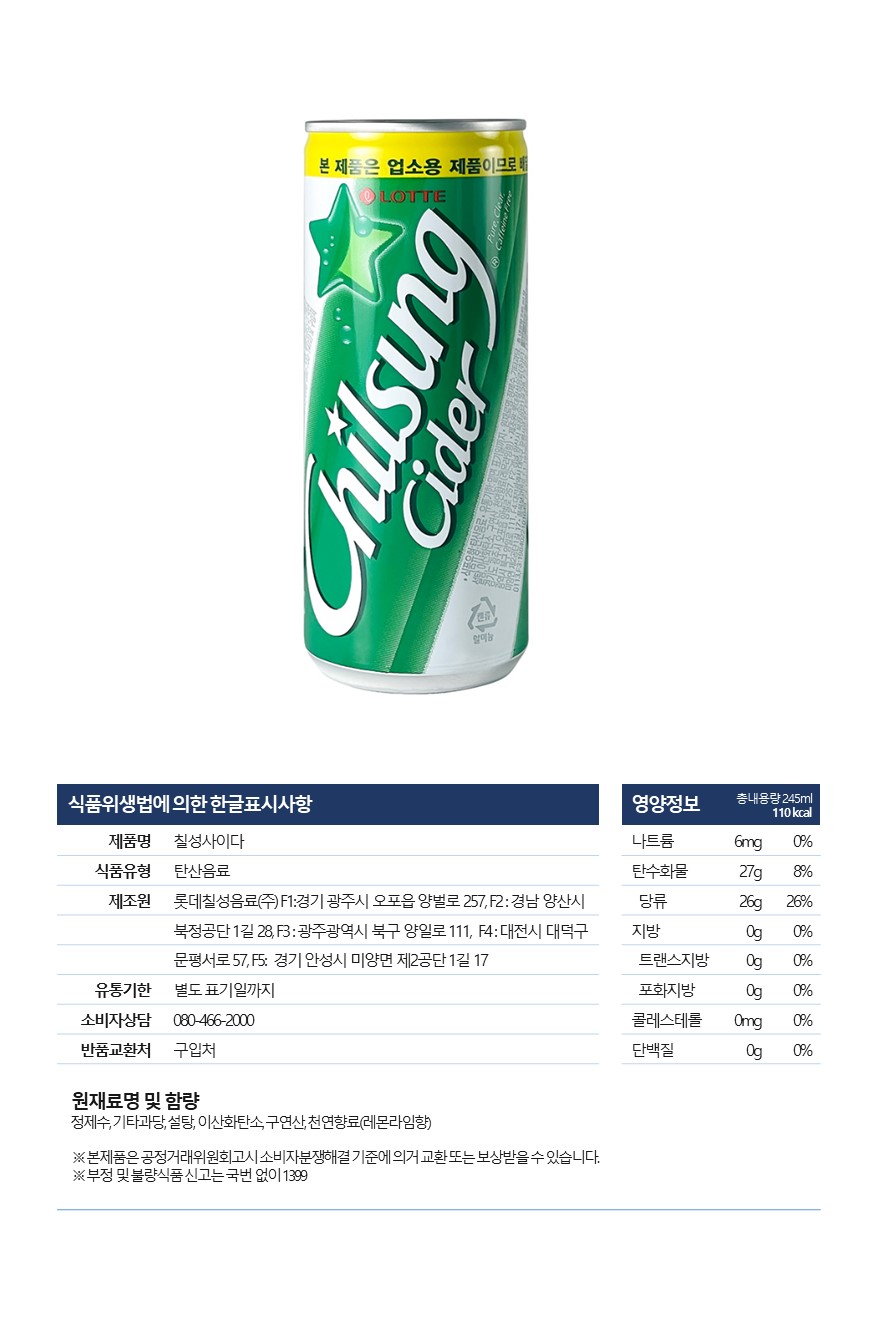 ![★초특가★롯데 칠성사이다 [캔,업소용245ml*30EA/BOX] 이미지](https://content.foodspring.co.kr/vendor/3309/images/104_4593767598_r.jpg?f=webp&s=876x876&t=inside)