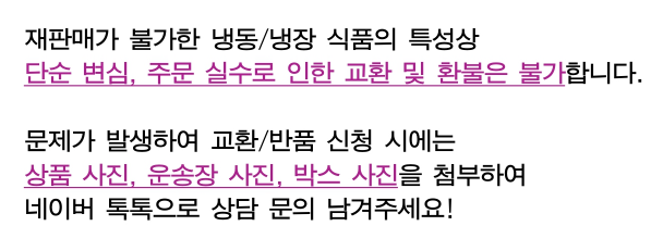 냉장, 냉동 식품 반품이 불가 하오니 신중한 구매 부탁드립니다.