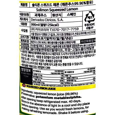 솔리몬 레몬주스(990ml 990g/EA) 이미지