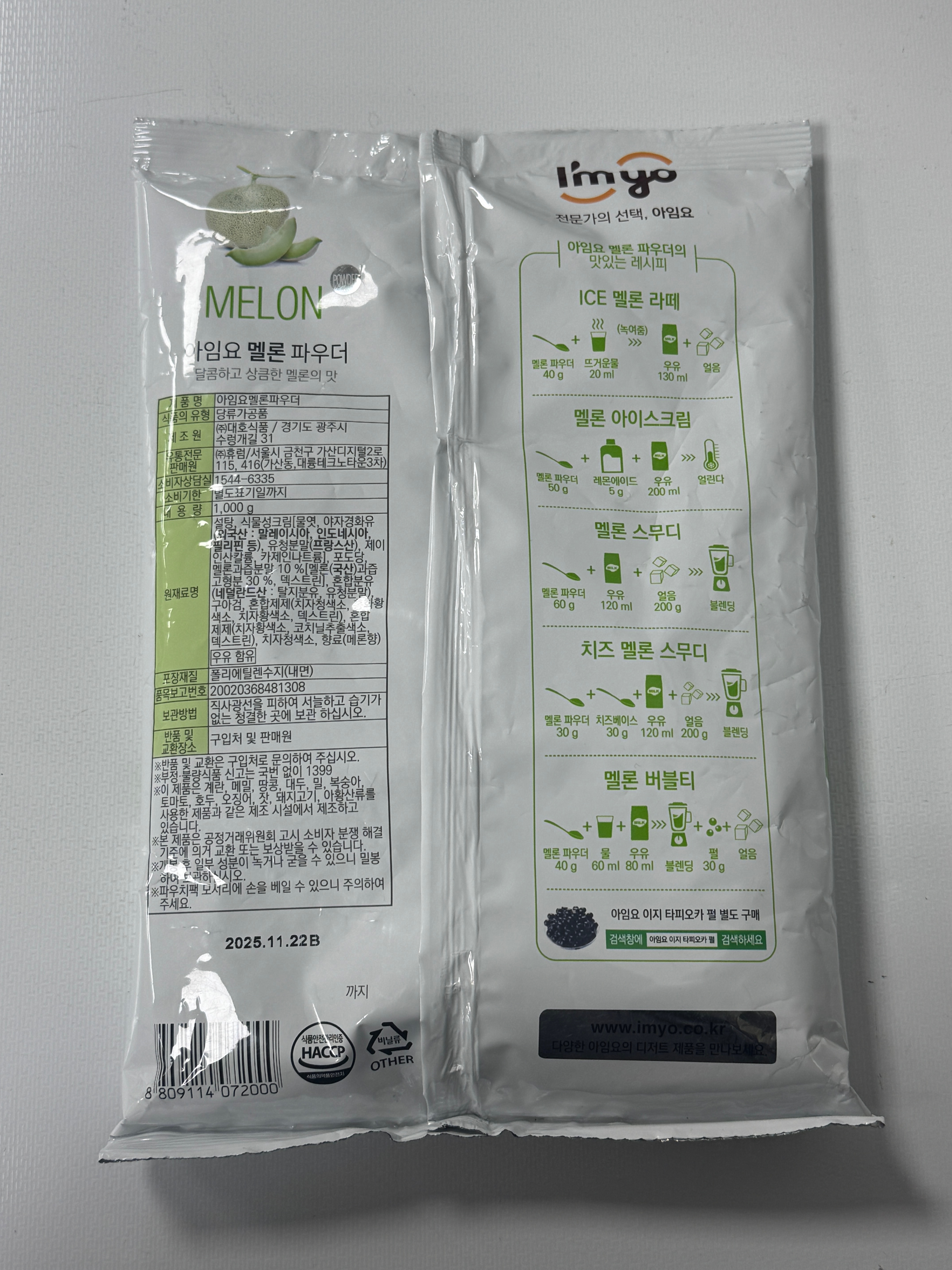 아임요 멜론맛버블티파우더(1Kg/EA) 이미지