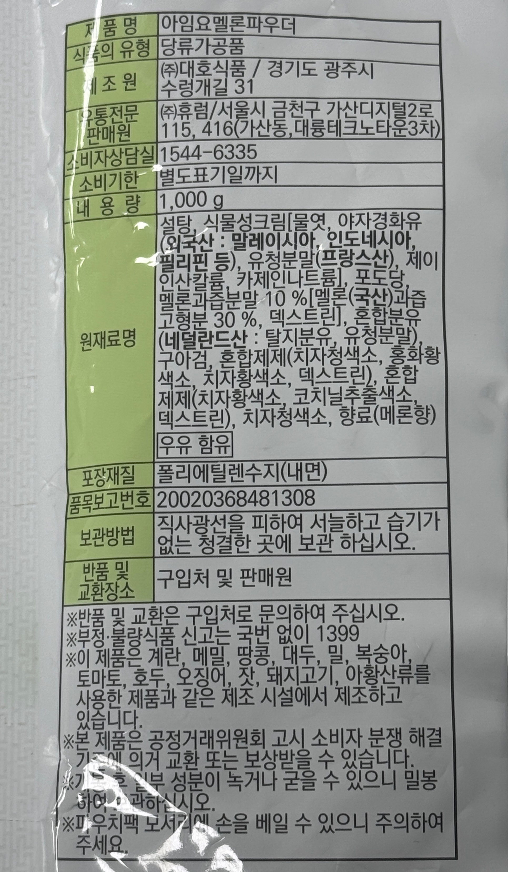 아임요 멜론맛버블티파우더(1Kg/EA)