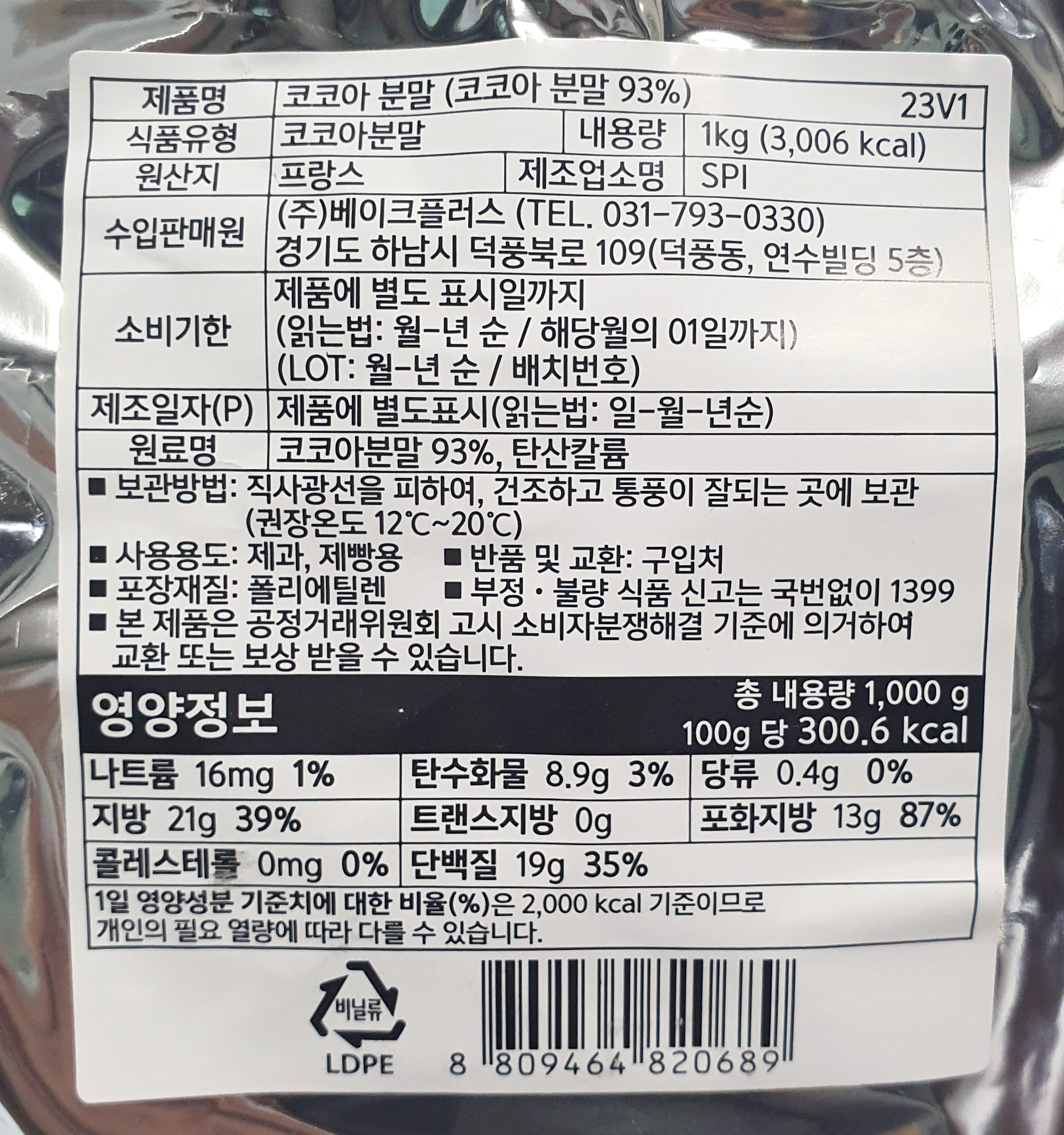 발로나 코코아파우더(1Kg/EA)