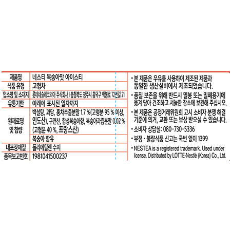 네스티 아이스티(복숭아_CGV용 800g/EA) 이미지