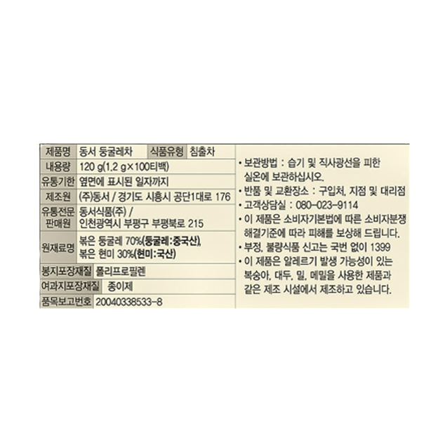 동서식품 둥굴레차(1.2g*100T 120g/EA) 이미지