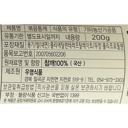 우영식품 볶음참깨(PET 200g/EA)