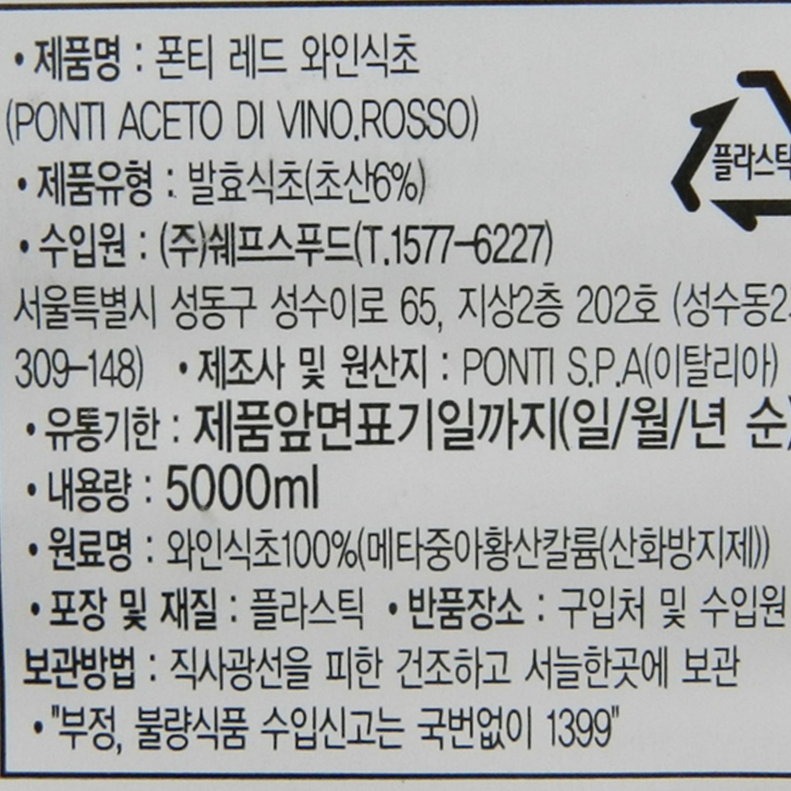 폰티 레드와인식초(5L 5Kg/EA) 이미지