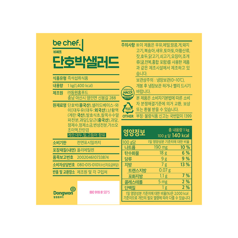 삼조쎌텍 단호박샐러드(1Kg/EA)