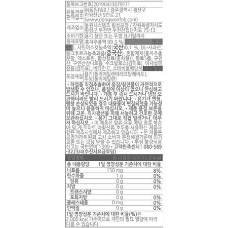 본 제품은 제품입고일별 유통기한 또는 품질유지기한이 상이하므로, 필요시 고객센터로 문의하여 주십시오. 제조일로부터 365일 까지